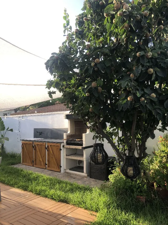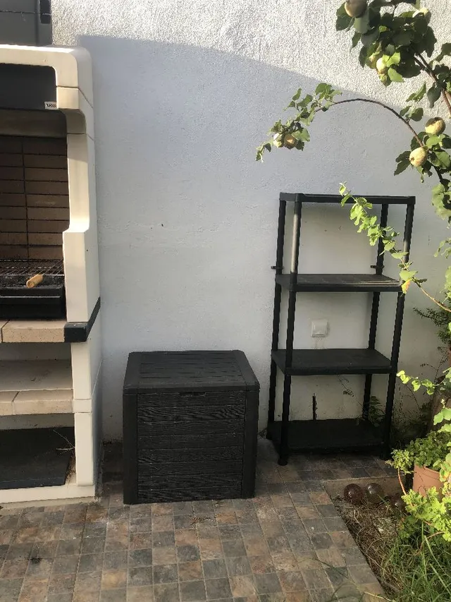 En el lateral de la parela de casa he instalado una barbacoa prefabricada y he realizado un mueble de obra al que le he fabricado a medida tres puestas,