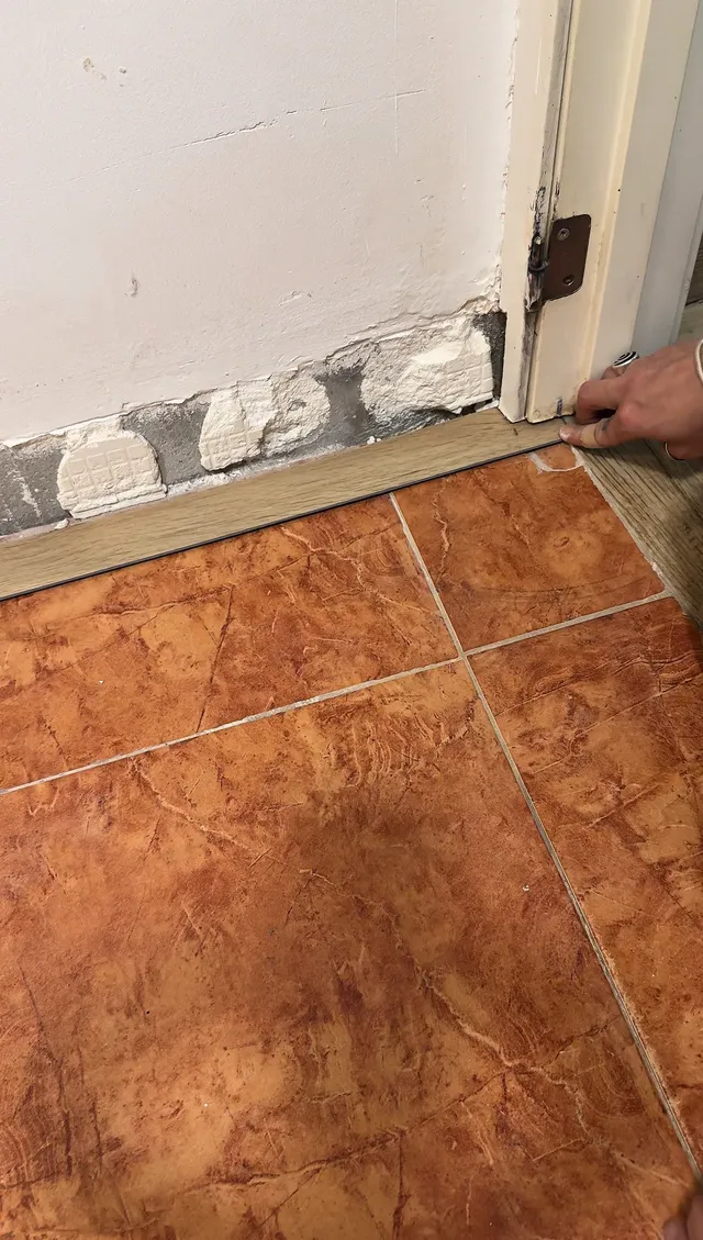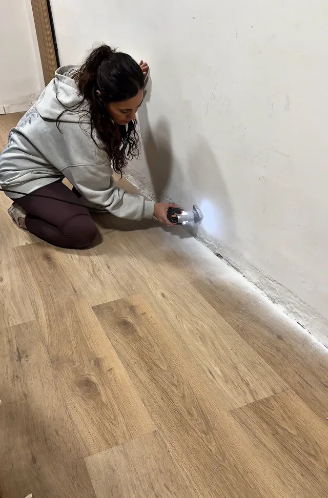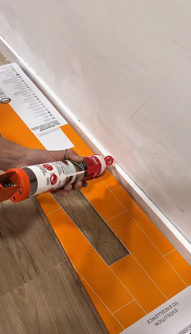 Finalmente, coloqué el rodapié con adhesivo y sellé la parte de arriba.