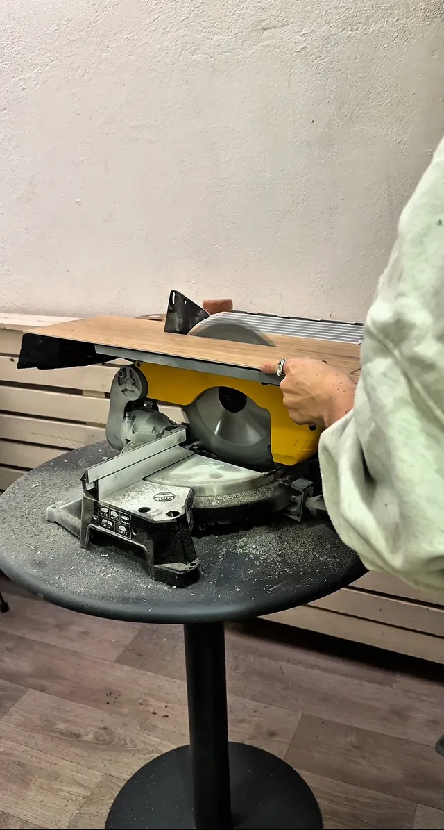 Para cortar el rodapié, sacando ángulos perfectos, y el suelo a lo largo, utilicé la ingletadora consiguiendo hacer este cambio Mucho más rápido y con el menor esfuerzo posible.