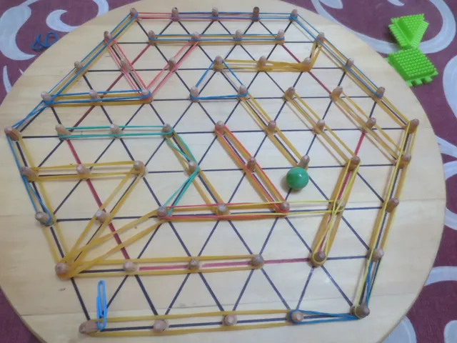 Pondremos gomas uniendo las espigas para realizar, en este caso un laberinto.