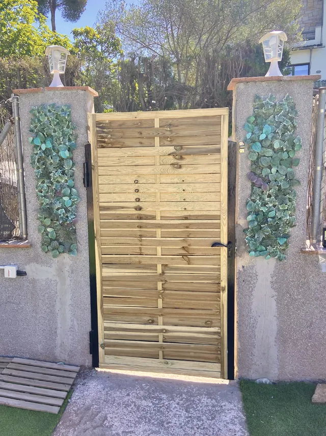 Pero había una cosa que teníamos clara: No queríamos ni seto, ni brezo ni similar. El sol lo acaba secando, los perros lo van arrancando y no se ve bonito para una puerta. Así que mirando y mirando... Nos pusimos manos a la obra. Esta es la puerta del cambio:
